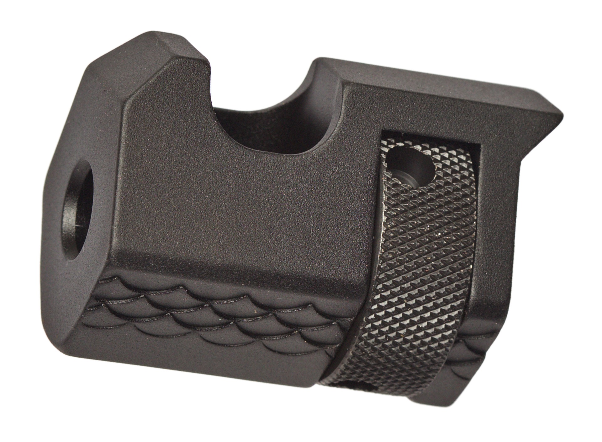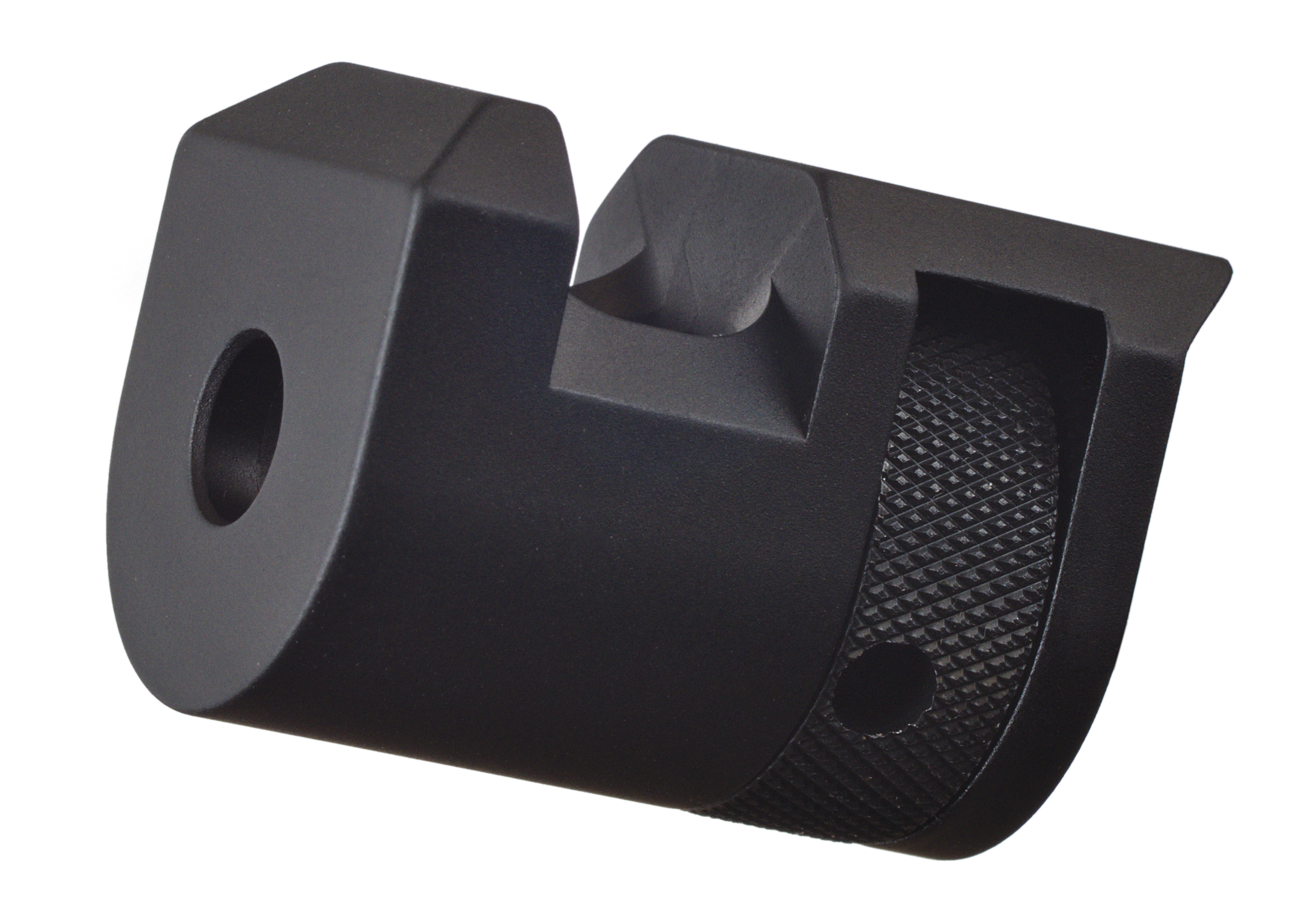 A captive, knurled nut secures the compensator to the muzzle threads. We include a comp wrench for secure installation and removal.
