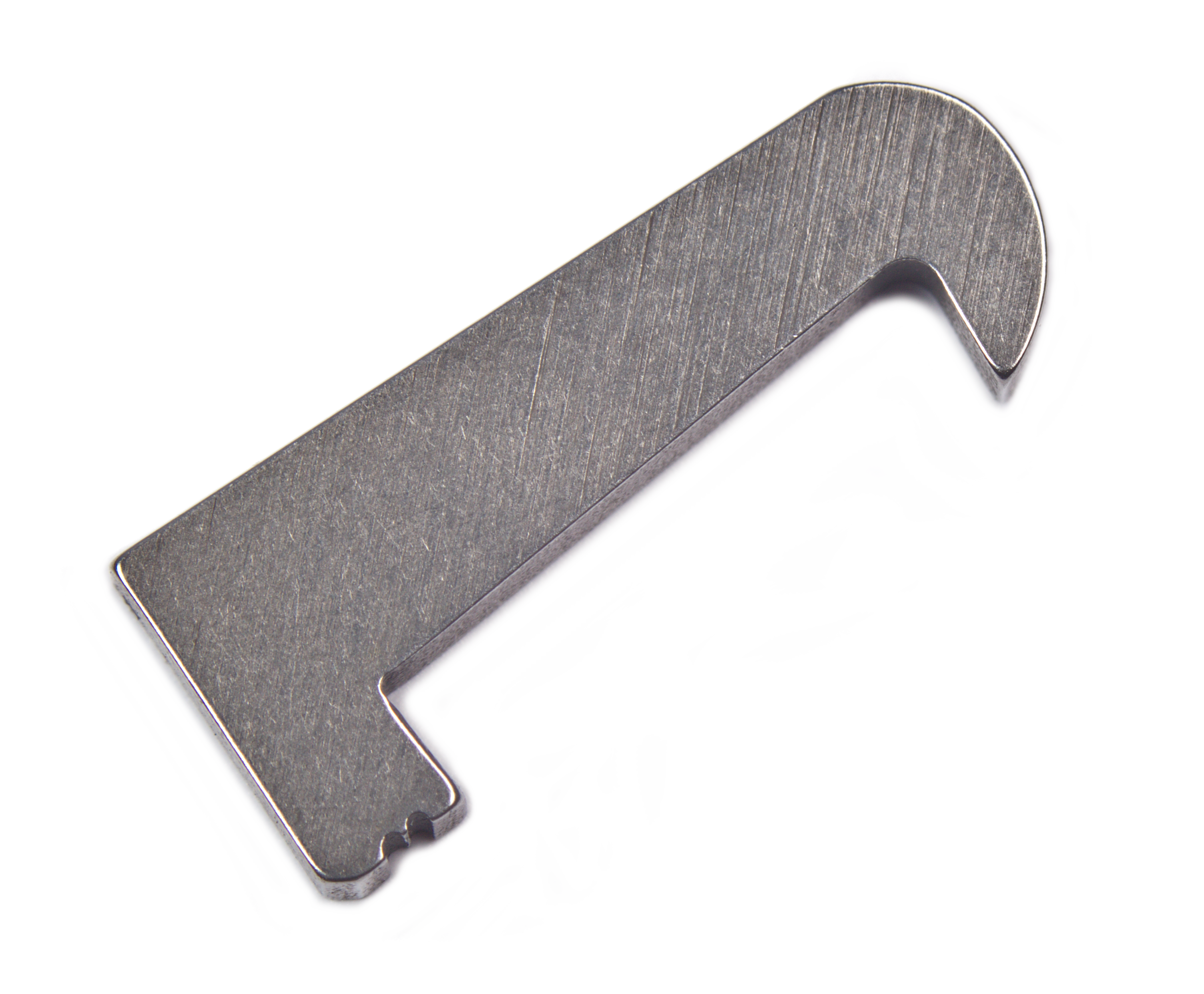 The Exact Edge Extractor is manufactured through an EDM process to produce exacting tolerances. The new extractor will not lose its edge under impact such as other extractors made from stamped steel or titanium that will have their edges roll over and actually cause extraction problems after a short period of use. Our extractor features a very precise hook point. It is hardened to a Rc 58-60 to withstand years of use and still maintain its edge. We are able to hold the tolerances to +/-.0001" by utilizing the EDM manufacturing process. The hook is .005" closer to the rim of the cartridge to allow for the most positive extraction available. Made of A2 tool steel.