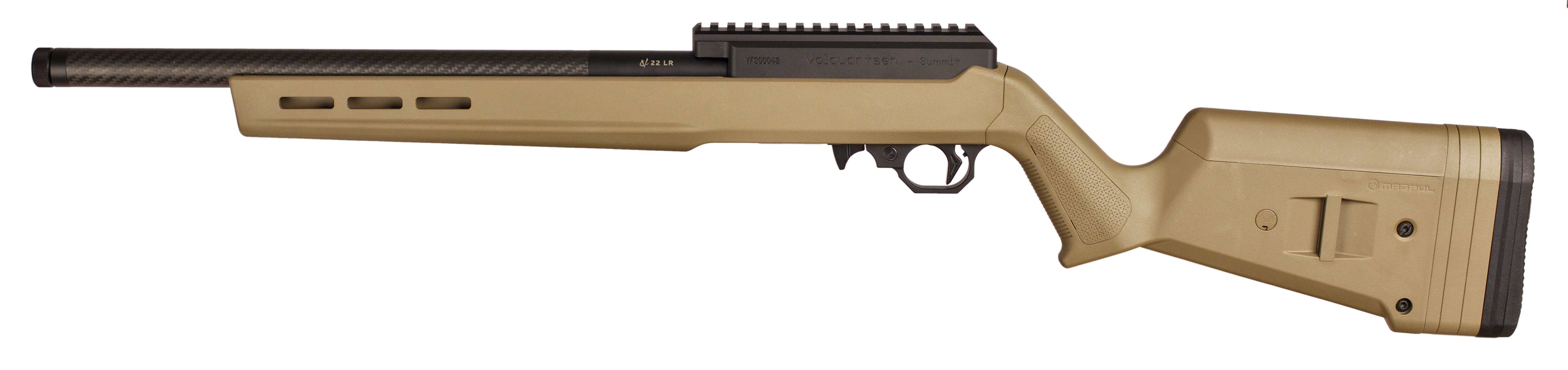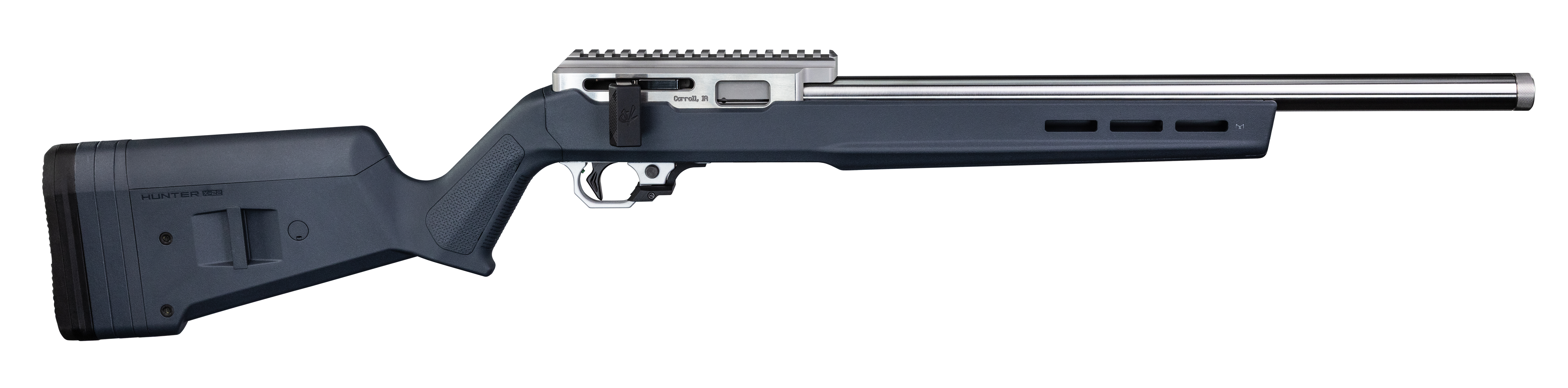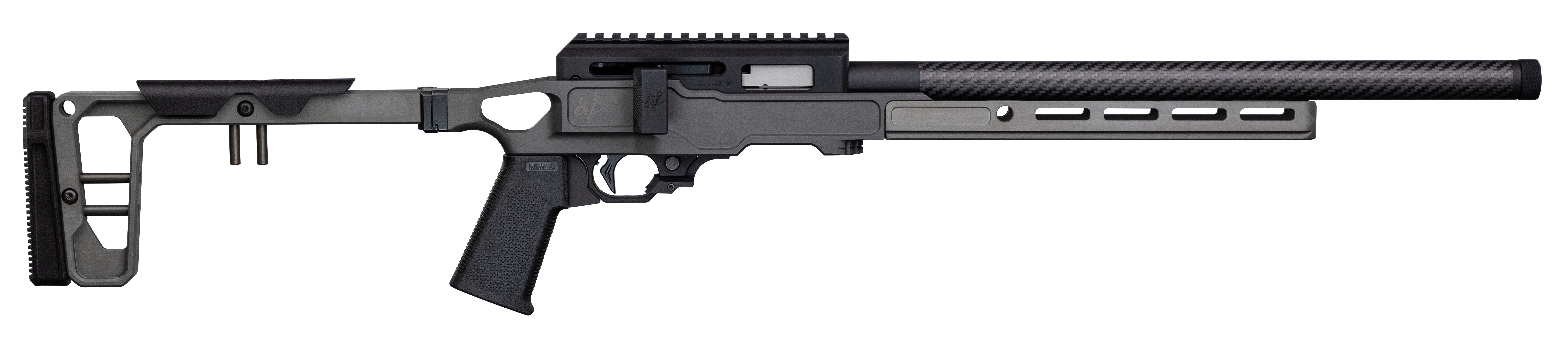 Designed for both competition shooting as well as small game hunting, this unique rifle is a straight-pull bolt action inspired by the 10/22 style platform. The CNC-machined receiver features an integral Picatinny Rail, making it the perfect rifle for any rimfire long range shooting.