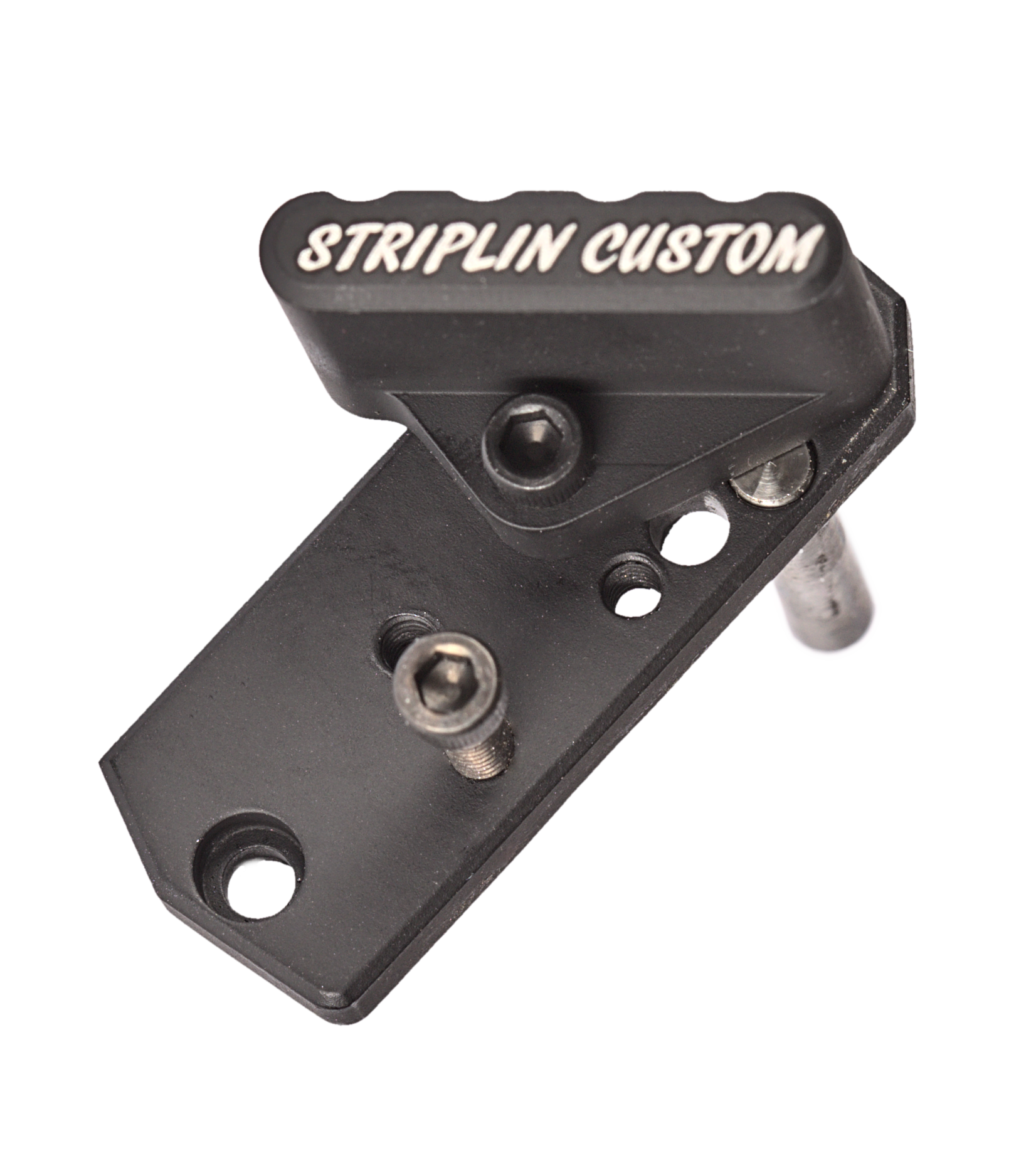 This thumbrest is custom made by Striplin Custom Gunworks for Volquartsen Scorpion Pistols. They are a 4 position thumbrest that allows some adjustment for placement and angle.