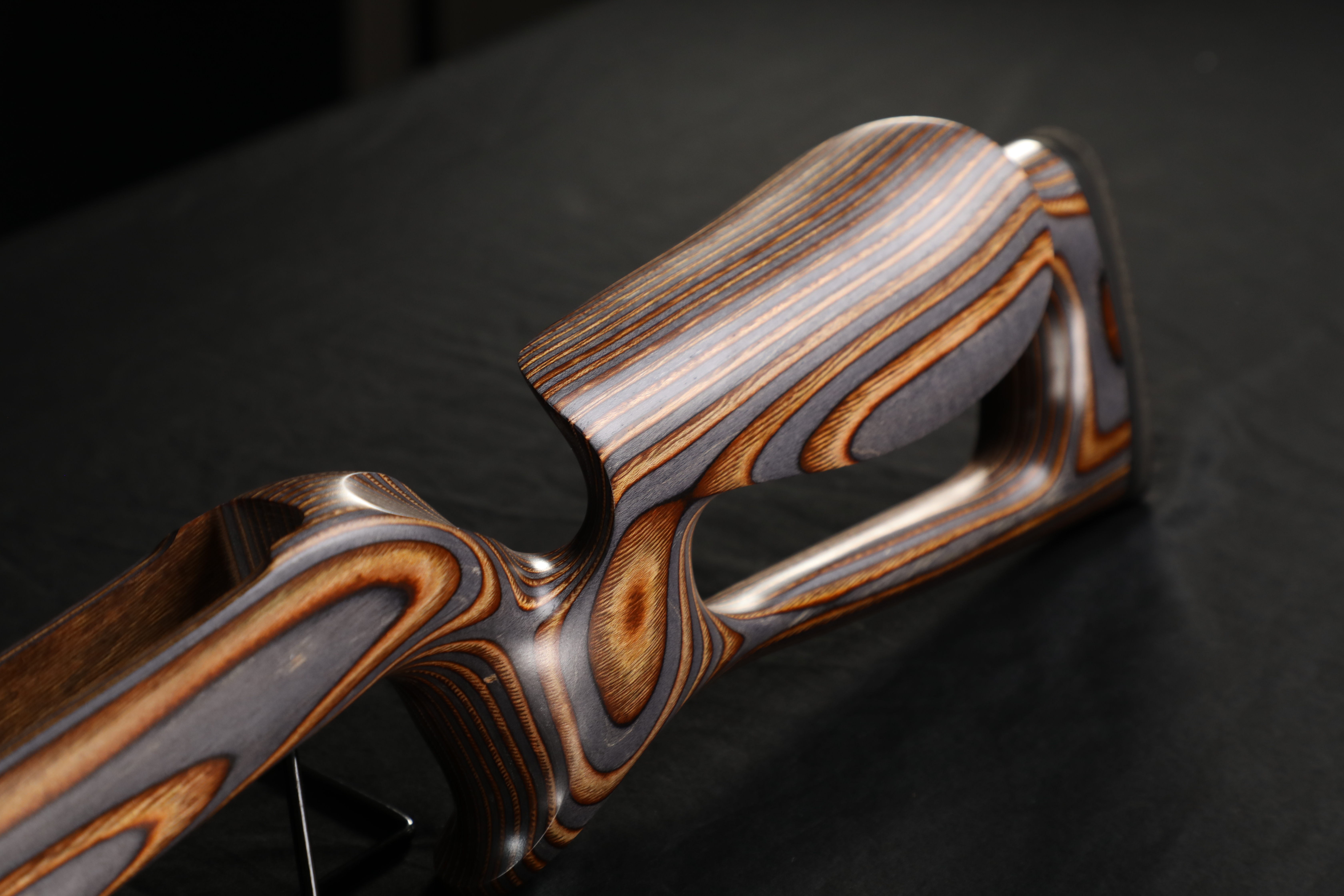 These stocks are CNC machined and hand finished. The fit, finish, and tolerances on these stocks is superior to any other laminated wood stock on the market. This stock was originally designed by Dan Hawkins of Hawk Tech Arms.