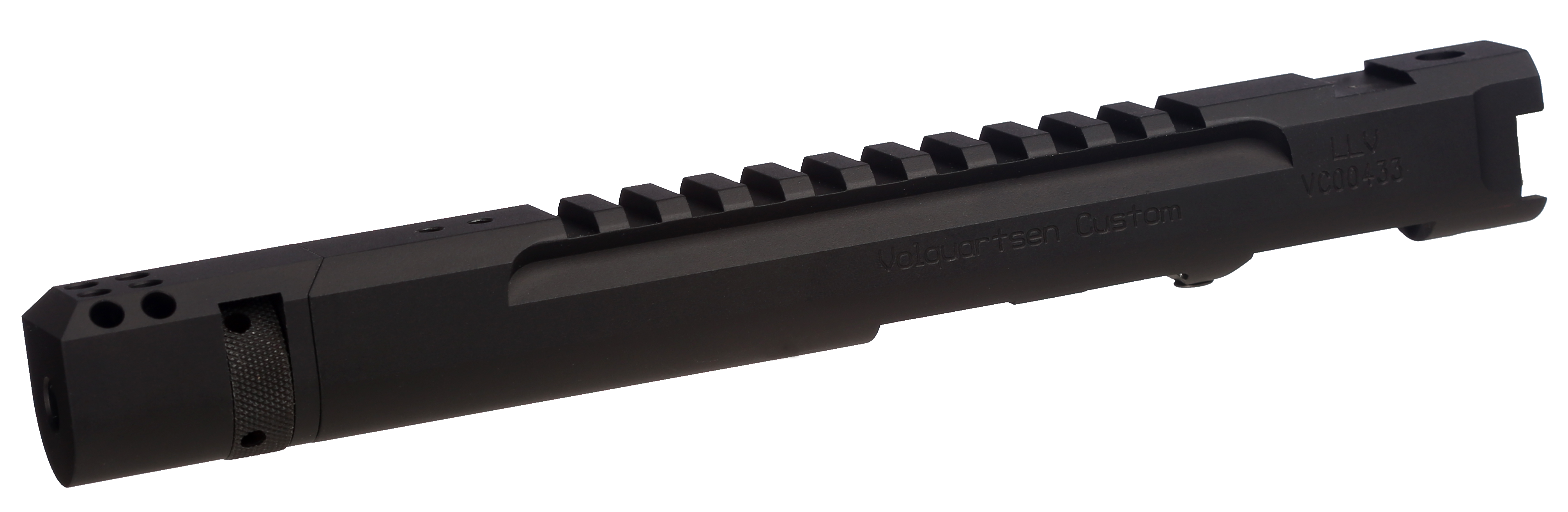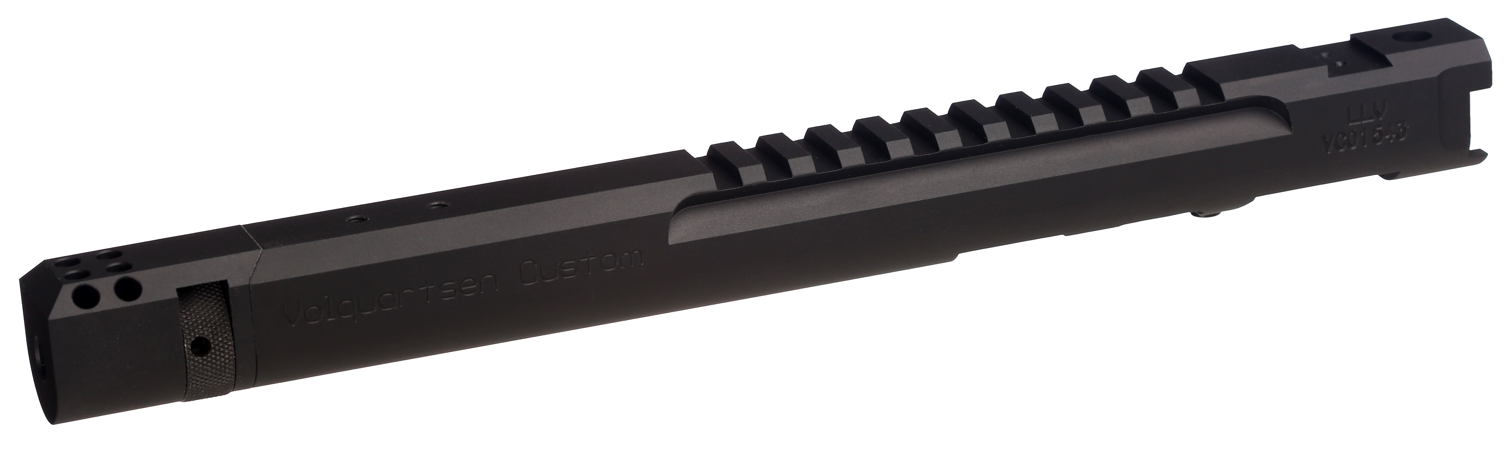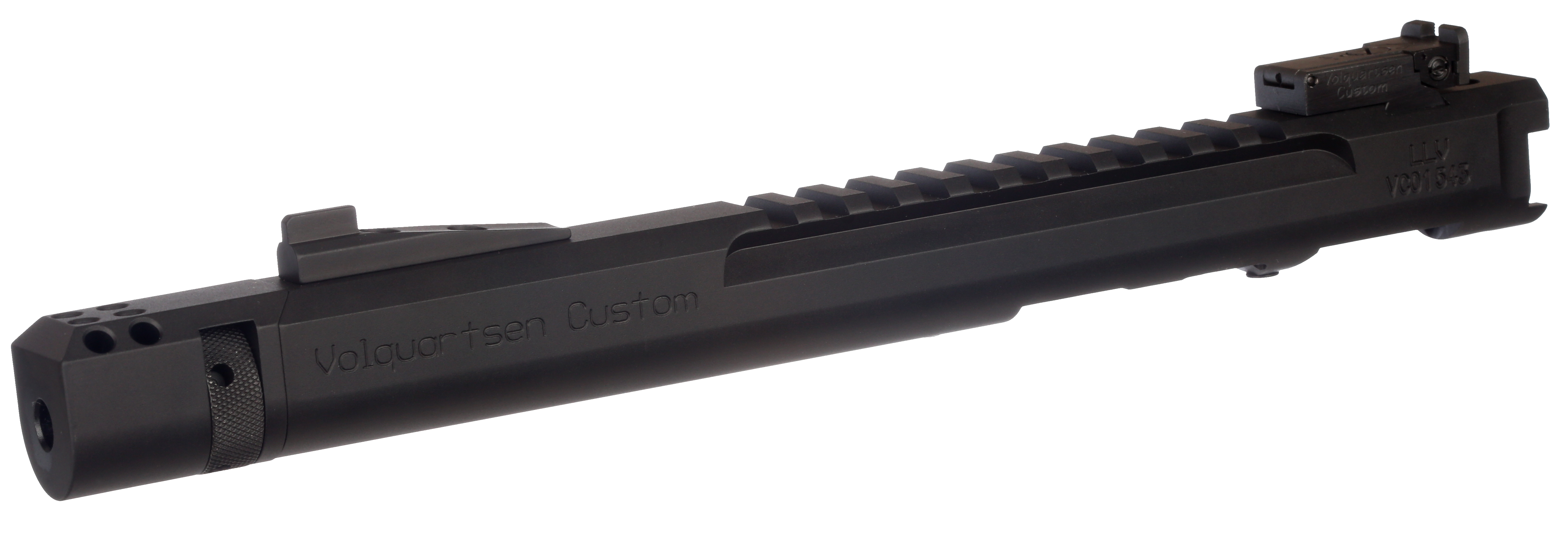 A CNC-machined billet receiver is the foundation of this lightweight setup. The receiver and barrel shroud are precision-machined as one piece from aluminum. An integral Picatinny rail is machined into the top of the receiver. It is then fitted with either a 3", 4.5", or 6" precision stainless steel barrel that has been machine-honed and lapped. The barrel has been contoured to reduce weight without sacrificing accuracy.