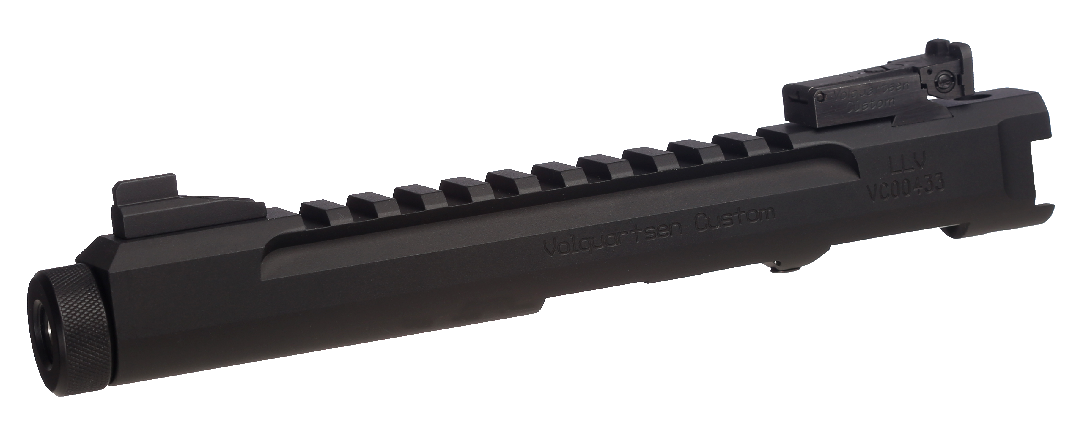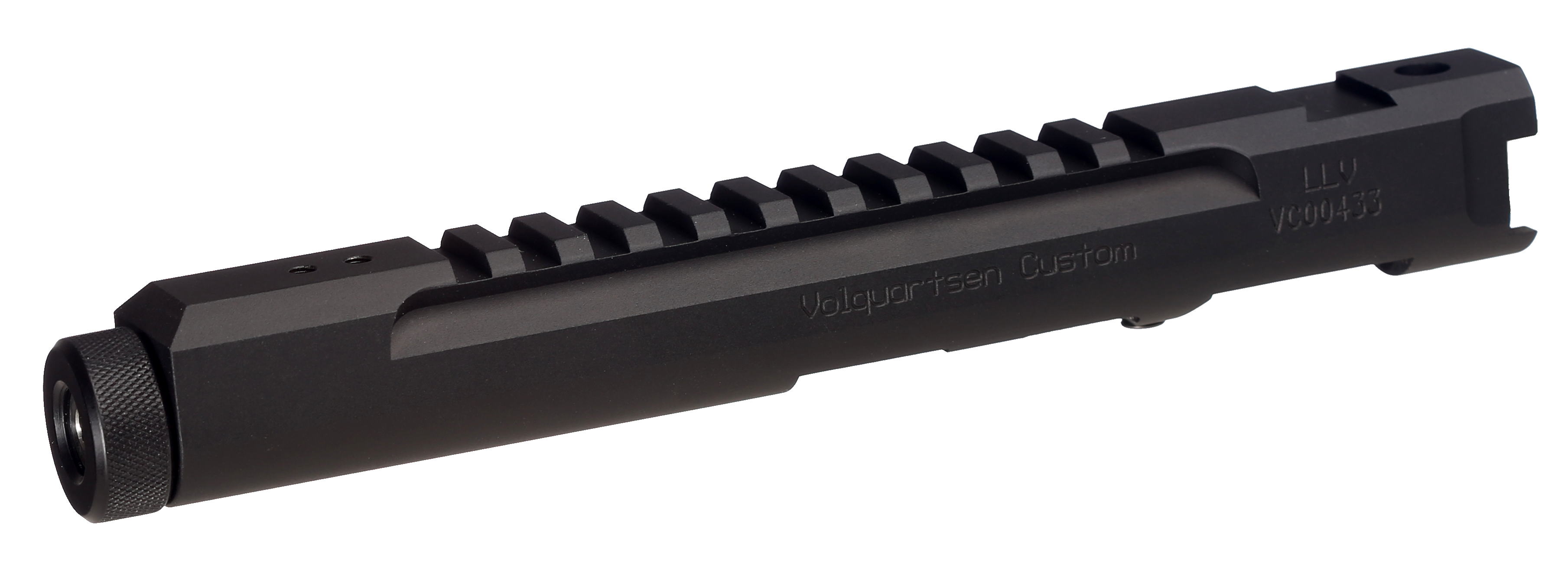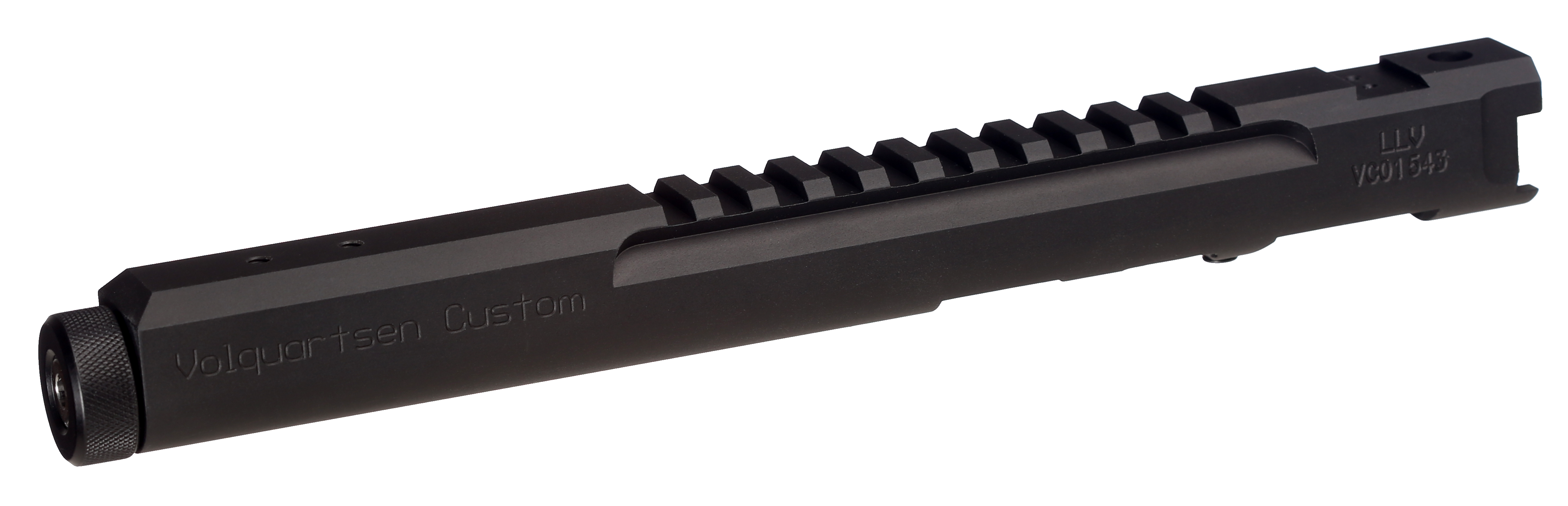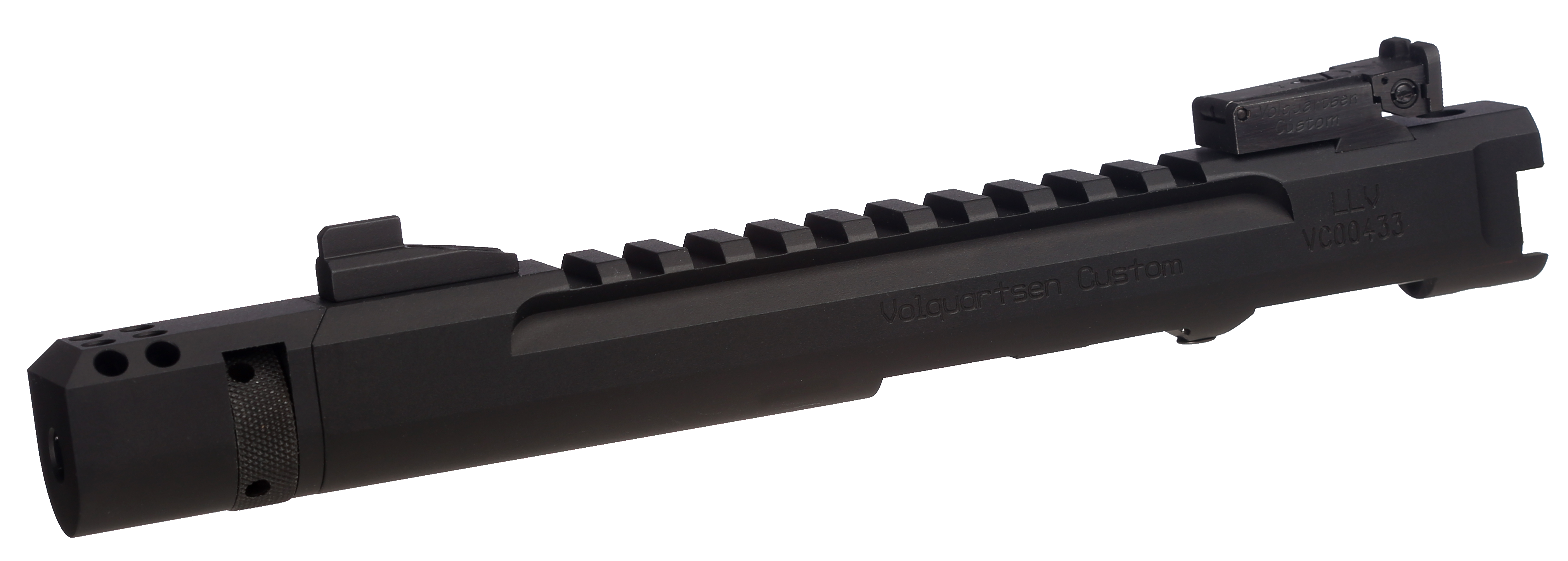 A CNC-machined billet receiver is the foundation of this lightweight setup. The receiver and barrel shroud are precision-machined as one piece from aluminum. An integral Picatinny rail is machined into the top of the receiver. It is then fitted with either a 3", 4.5", or 6" precision stainless steel barrel that has been machine-honed and lapped. The barrel has been contoured to reduce weight without sacrificing accuracy.